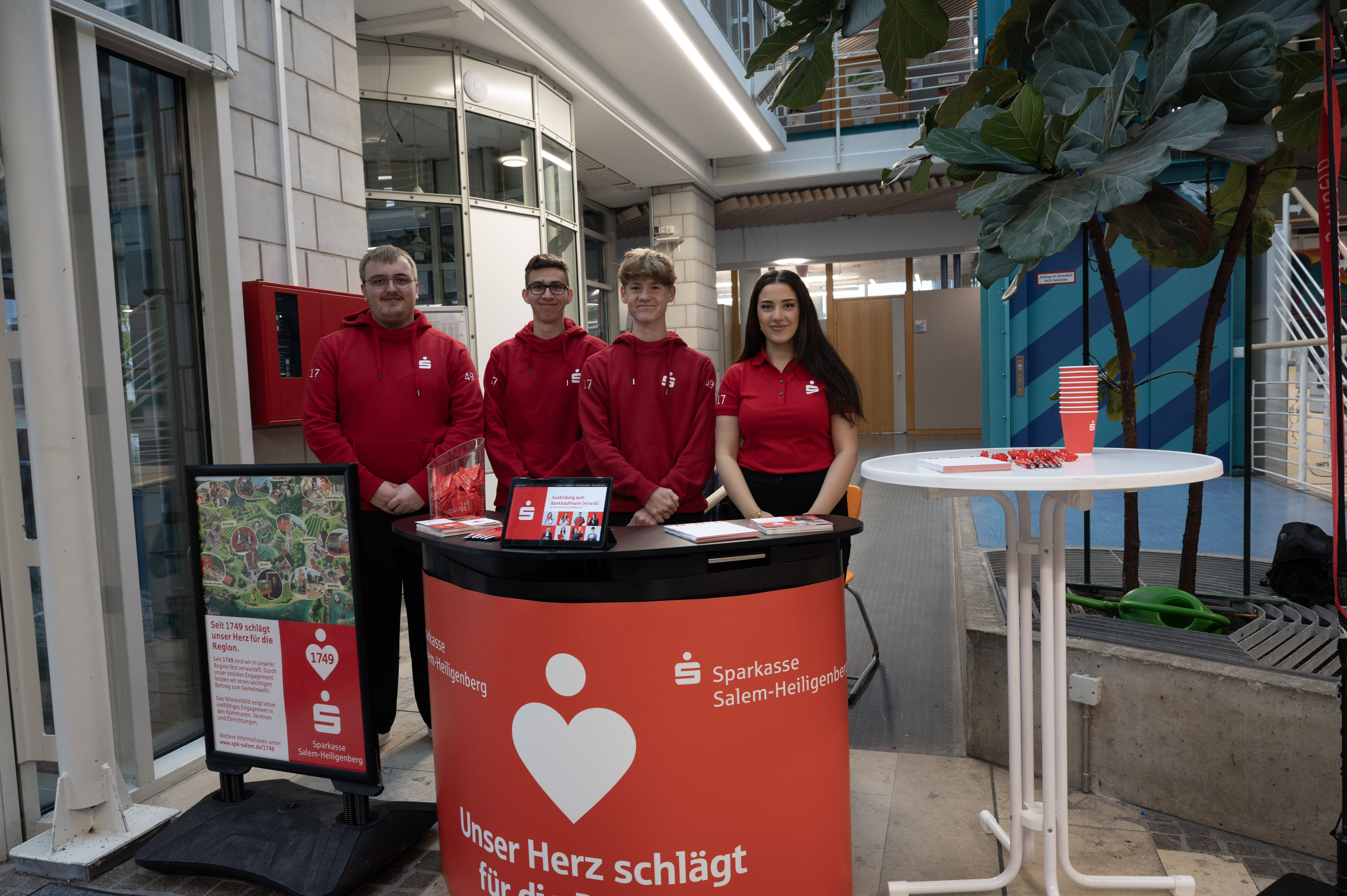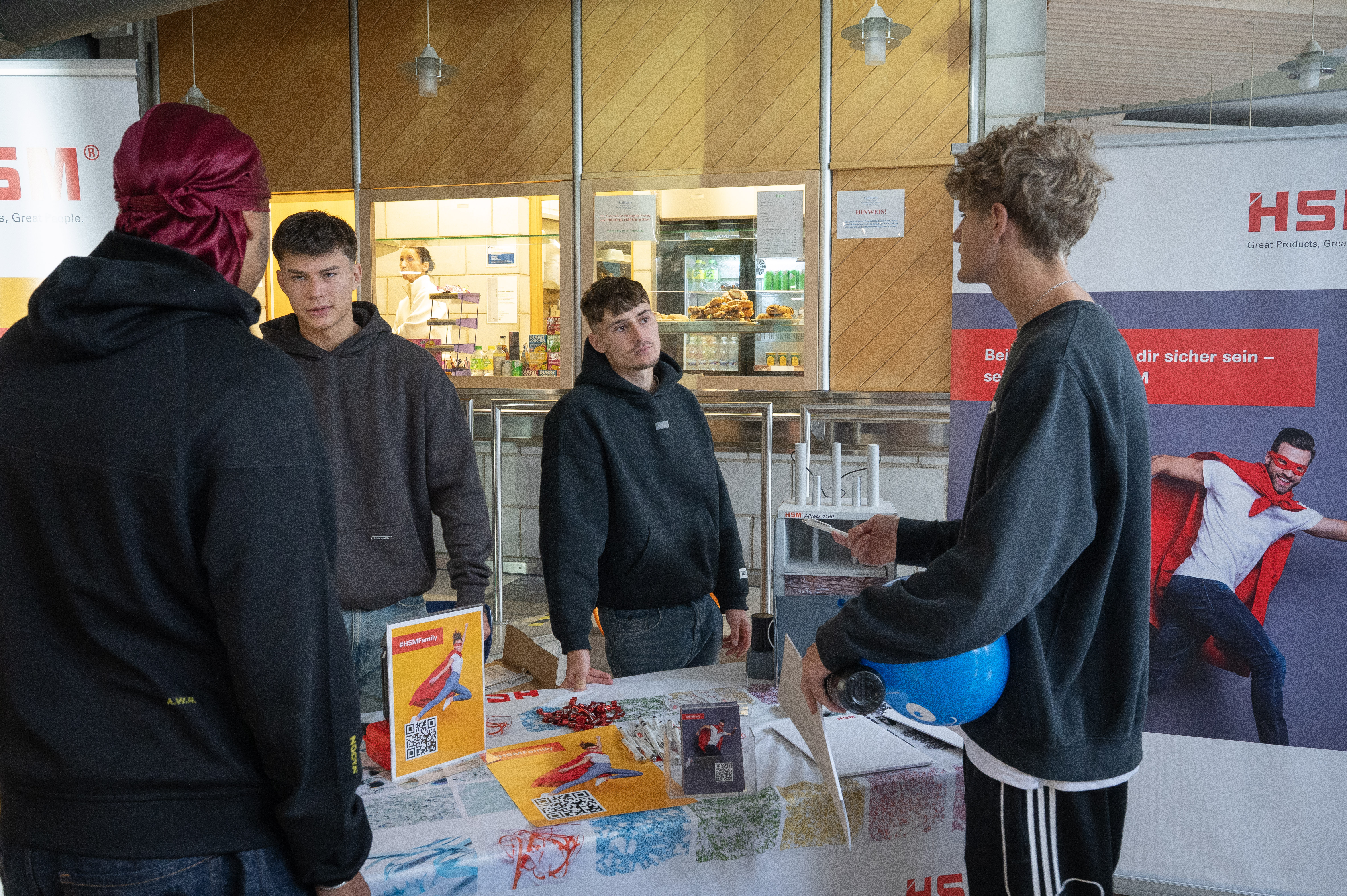 Als Azubi einmal das ganze eigene Unternehmen repräsentieren – das macht der „Tag der Ausbildungsbetriebe“ möglich! Im Foyer der Schule stehen die Auszubildenden des zweiten Lehrjahres der Kaufmännischen Berufsschulen Rede und Antwort. Nicht immer bekommen die Klassen der anderen Schularten mit, dass es für ihre eigenen Zukunftsfragen ExpertInnen im eigenen Haus gibt - So erhalten die SchülerInnen des Berufskollegs wertvolle Einblicke für ihr bevorstehendes Pflichtpraktikum, es entstehen Ideen für eine mögliche Ausbildung nach der Fachhochschulreife – und auch die Klassen des Wirtschaftsgymnasiums bekommen Anregungen für ihre berufliche Zukunft nach dem Abschluss.