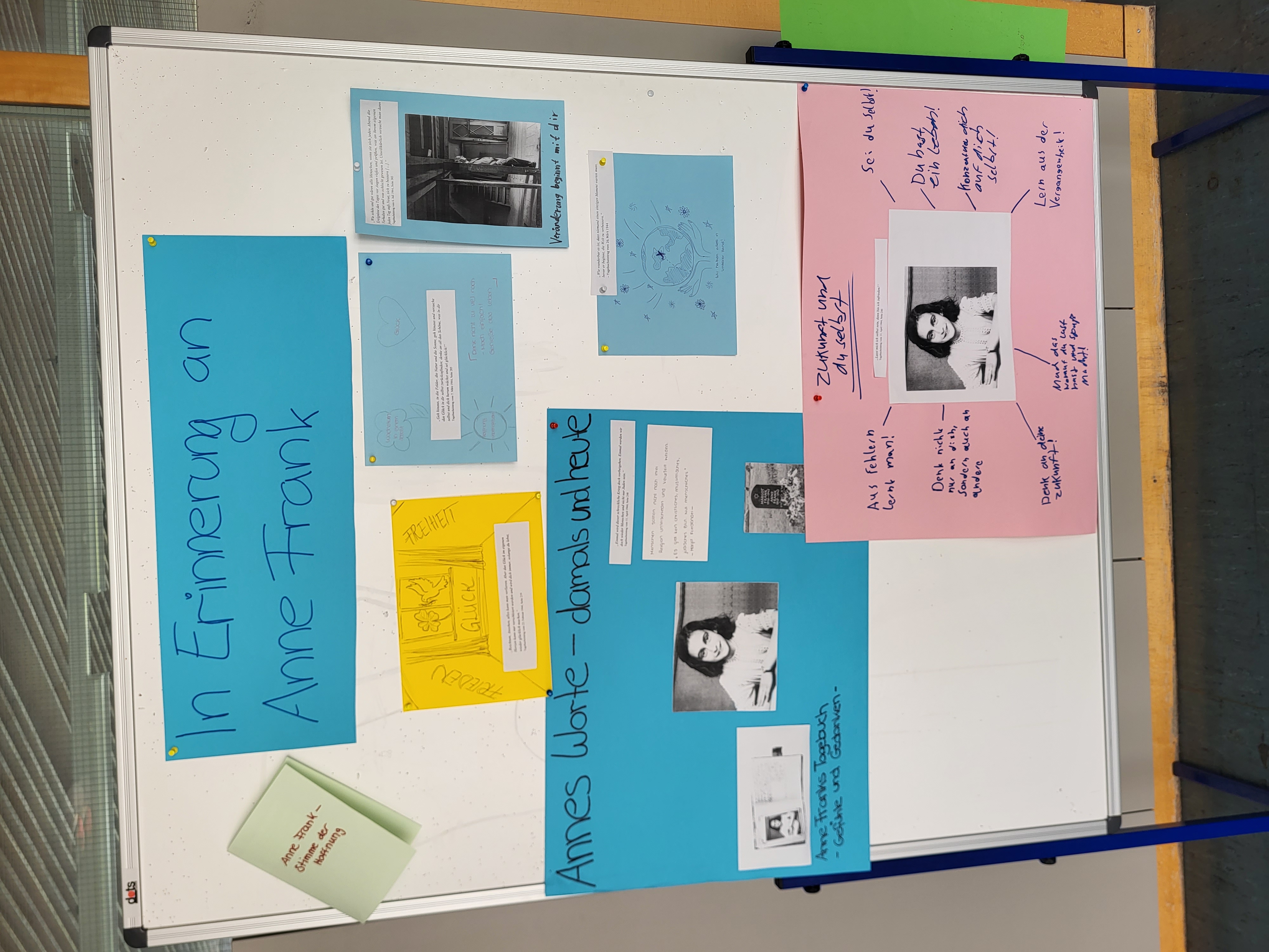 Die Niederlande waren von Mai 1940 bis Mai 1945 von Deutschland besetzt. Die virtuelle Erfahrung ermöglichte einen eindrucksvollen Einblick in das Leben im Versteck und regte zur intensiven Auseinandersetzung mit Themen wie Ausgrenzung, Verfolgung und Erinnerungskultur an. In einer gemeinsamen Diskussion wurde erörtert, welche Bedeutung Orte der Erinnerung für das historische Lernen haben und wie digitale Medien wie Virtual Reality helfen können, Geschichte und Demokratiebildung nicht nur zu vermitteln, sondern erfahrbar zu machen. Als sichtbares Zeichen gestalteten die Teilnehmenden außerdem eine "Wand des Gedenkens" an Anne Frank und weitere Verfolgte, die anschließend im Schulhaus ausgestellt wurde.